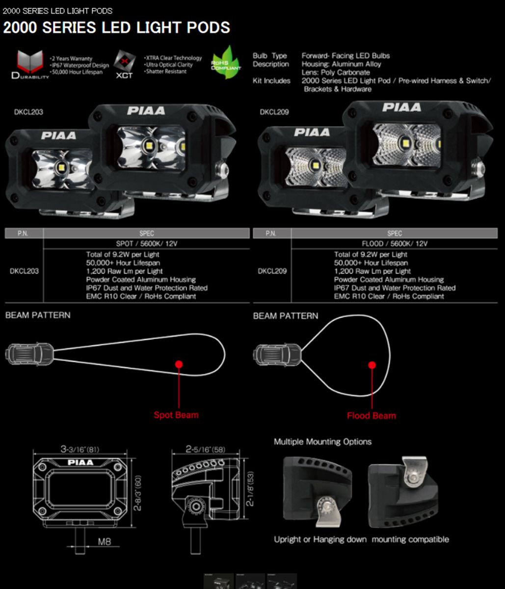 PIAA 2000 Series Pod Spot Beam 5600K 3-inches