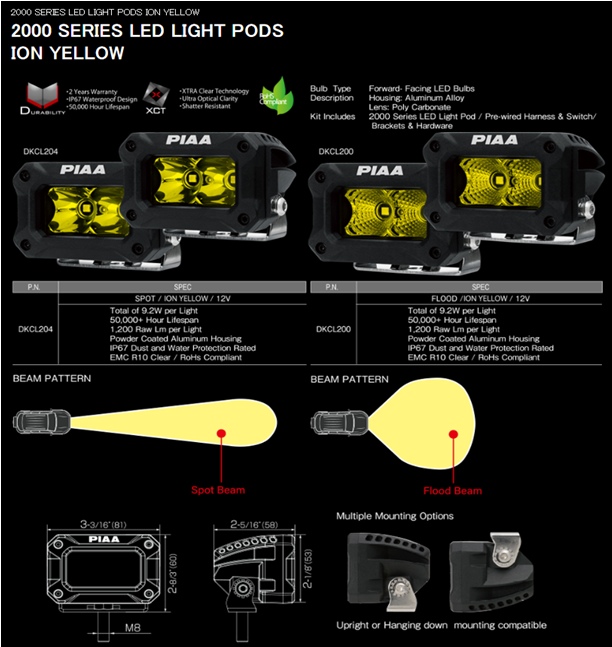 PIAA's innovative Reflector Facing design offers significantly improved lighting and beam control compared to conventional LED and halogen lamps with forward-facing bulbs. The result is greater visibility for drivers. Our exclusive computer-designed, multi-surface reflector concentrates and focuses the beam pattern of the rearward-facing LED bulbs more precisely than forward-facing LED lamps.